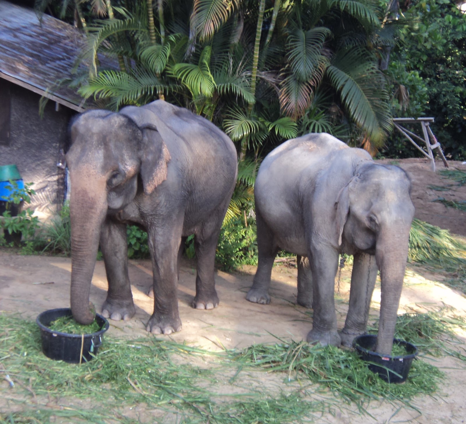 Happy Thanksgiving dear friends and family!  What a day of wonder we've had.  We arranged with the lovely ladies who run our hotel to hire a car and driver for the day to take us to the Maesa Elephant Park, the Queen Sikrit Botanical Garden, and to dinner at Duke's in the shopping mall.